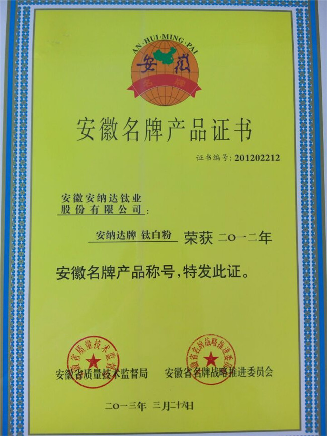 安徽名牌產(chǎn)品證書